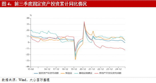 3. 投资增速明显放缓,房地产供需两端压力仍较大。
