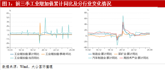 摘要:2025年前三季度,在全球经济复苏乏力和外部环境复杂多变的背景下,中国经济总体保持平稳运行,前三季度国内生产总值同比增长5.2%。宏观基本面呈现出韧性增强、结构调整加快的特征。展望四季度,国际经贸格局的不确定性仍然较大,中美经贸关系的波动与全球产业链重塑对外需带来挑战,但出口的多元化布局与产业竞争力提升将继续发挥稳定作用。国内经济结构转型进入关键阶段,宏观政策将坚持稳中求进的总基调,财政政策加力提效、货币政策稳健灵活,重点支持科技创新、消费扩容与绿色转型。随着政策效应的逐步释放,四季度经济增速有望企稳回升,全年实现5%左右的增长目标。