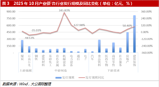 (四)产业债发行规模同比大幅增长52.16%,房地产以及建筑装饰两行业债券发行规模同比增幅显著