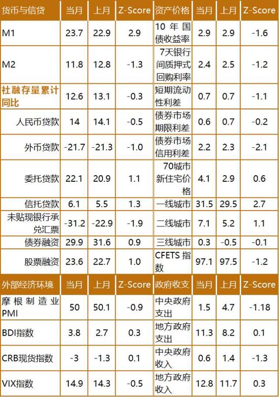 外部环境基本持平。反映外需变化的摩根全球制造业PMI由上月的50.1重回50荣枯线。反映短期市场波动性预期的标普500 VIX较上月略有上升。此外,BDI指数和CRB指数一升一降,走势发生背离,不过尚处于历史正常区间内。