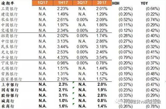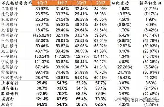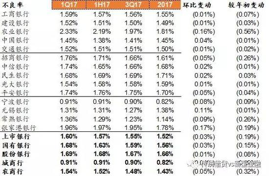 不良率环比下降。从公布年报的数据看,上市银行2017年不良率1.52%,环比下降3bp,同比下降19bp;国有行平均不良率1.56%,环比下降3bp,同比下降15bp,股份行不良率1.66%,环比下降1bp,同比下降8bp。