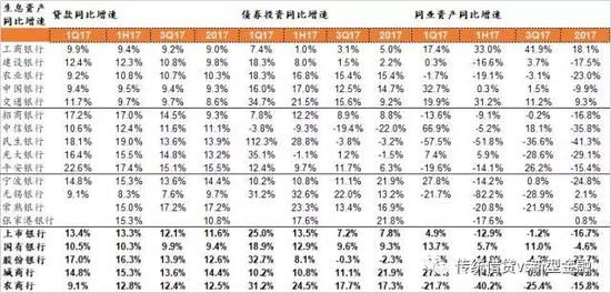 债券投资增速国有行平稳、股份行压缩;同业资产规模整体压缩。上市银行、国有行、股份行债券投资/同业资产规模同比增长7.8%/-16.7%、9.3%/-4.6%、-2.3%/-27.7%。对债券投资细项拆分,国有行增加了交易类和持有至到期投资,应收款项类投资略有压缩;股份行加大了交易类和可供出售金融资产投资,应收款项类有大幅压降:交易类、可供出售金融资产、持有至到期投资、应收款项类投资同比增速国有行+26.5%、+2.9%、+13.4%、-0.5%;股份行+35.7%、610.8%(主要是平安银行同比变化幅度较大)、16.5%、-16.8%。