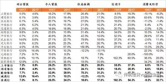 各家银行零售发力,股份行零售贷款规模同比增幅最大。上市银行、国有行、股份行贷款规模同比增长11.6%、9.4%、12.6%;其中对公贷款同增5.5%、4.9%、2.4%;个贷同增23.1%、18.2%、29.9%。个贷中信用卡和消费经营贷力度最大。(住房按揭同增20.5%、18.8%、31.2%;信用卡同增37.5%、25.9%、42.3%;消费及经营贷同增19.1%、15.8%、18.6%)。个股零售贷款增速较快的银行是中信(29%)、平安(57%)、张家港行(38%);其中中信由信用卡和消费经营贷推动(40%、37%);平安由住房按揭推动(79.4%)。