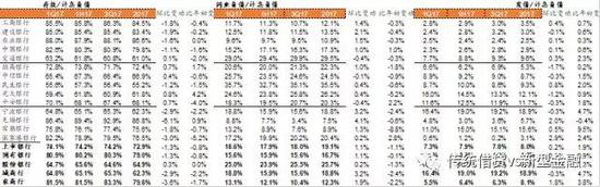 拨贷比分析:国有行、股份行拨贷比环比上升:国有行环比升5bp、同比升1bp;股份行环比升10bp、同比升2bp。拨备占贷款比值高的银行有农行(3.77%)、招行(4.22%)、宁波银行(4.04%)、常熟银行(3.72%);环比上升较大的银行为建行(+11bp)、中行(+14bp)、招行(32bp)、中信(+17bp)。