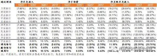 非息收入和手续费收入分析:国有行净非息收入增速受手续费、其他非息收入拖累增速下滑;股份行净非息收入和净手续费收入保持高增长。国有行、股份行、城商行(宁波银行)2017年净非息收入/净手续费收入分别同比增长-9.65%/-2.78%、4.49%/5.39%、46.63%/6.42%。个股层面4季度净手续费收入同比增速较3季度上升较快的有建行(+2.05%)、交行(4.29%)、招行(+5%)、平安(+14.3%)。
