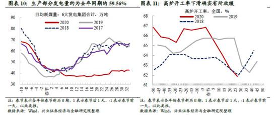 产能有所恢复,但仍在低位。自2月19日开始,日均耗煤量出现小幅跳升后逐步上升。以日均耗煤量近似发电量,考虑到2019年同期居民用电量的占比(约17%)和水电风电发电量占比(水电12%、风电6%),2月29日,生产部门的用电量大约为正常用电情况的59.56%。发电因为低库存,是整体用电情况的良好反应,但用电量中第二产业占比较高(约70%),发电耗煤可能更多地是第二产业复工情况的衡量,且受到电解铝等耗电较高行业影响较大。整体而言,第三产业恢复应该慢于第二产业,发电量水平可能是整体复工规模的偏上限估计。