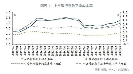 面对新型冠状病毒肺炎的冲击,降低实体经济融资成本的重要性进一步凸显,关于是否要调整存款基准利率的讨论也开始进入公众的视野。2019年8月LPR形成机制改革以来,1年期LPR累计下降26bp至4.05%,但银行存款成本却面临着上升的压力。上市银行公布的2019年半年报显示,各银行个人定期存款平均成本率提高至3.23%,较2018年同期提高了31bp;公司定期存款平均成本率提高至2.96%,较2018年同期高出28bp。存贷款利率背道而驰,一定程度上阻碍了政策利率向实体经济的传导。