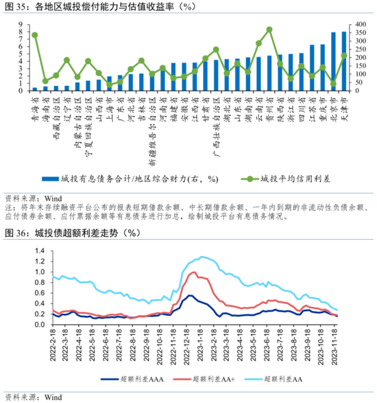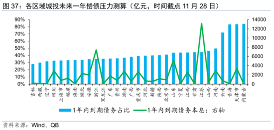 后续城投债供给缩减仍是大趋势,需高度关注偿债流动性压力较大的区域。受到债务总规模控制的影响,城投债供给缩减的大趋势难以改变。从未来一年债务到期本息来看,天津市、江苏省、湖南省、四川省、山东省、浙江省等地区的偿债流动性压力仍较大。