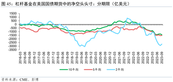 另外,本轮美联储加息进程中,对冲基金在国债现券、期货和回购市场头寸增加,与现金-期货基差交易的增加相对应,表明对冲基金正大量参与美国国债现货与期货市场的基差套利交易,并导致国债期货合约的空头头寸达到历史新高。目前美国国债期货杠杆空头头寸的创纪录增加是一个值得高度警惕的金融风险点,且基差交易的高杠杆率策略会造成金融稳定的脆弱性,若出现保证金比率大幅调整、回购融资成本大幅上升以及金融市场避险资金流向期货市场三种情形,则容易触发美债市场的大幅震荡。后市来看,需要警惕可能出现的基差套利交易的集中性平仓引发的美债抛售,进而导致新一轮美债市场动荡。