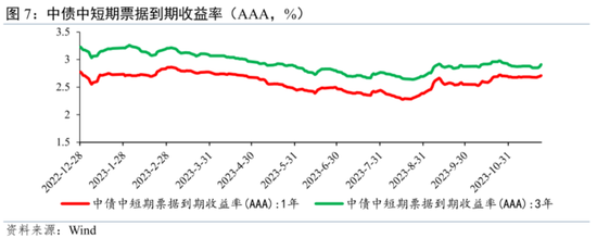 从资金面看,2023年三季度货币政策执行报告提出,要“保持银行体系流动性和货币市场利率平稳运行”“准确把握货币信贷供需规律和新特点,加强货币供应总量和结构双重调节”,2024年流动性冲击或有所减弱,资金利率中枢小幅下移,进而带动债市利率中枢有所下行。同时,中央金融工作会议和2023年三季度货币政策执行报告均指出要进一步降低实体企业融资成本,显示出2024年广谱利率的下行仍是大势所趋,且当前MLF利率较10Y国债利率仍然偏低,债市利率中枢具有下行动力。