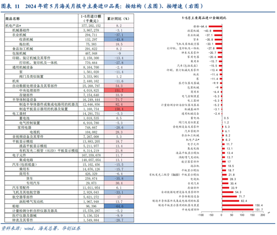 从海关月报中的重点进口商品看,今年1-5月进口增速较高的,主要是高端制造设备与核心元器件,具体而言: