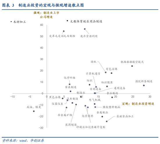 行业层面,微观上市公司资本开支增速,与宏观制造业投资增速,同样存在一定差异,详见正文。