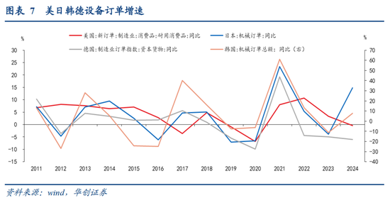 第三个视角是观测美国、日本、韩国、德国的设备新订单。