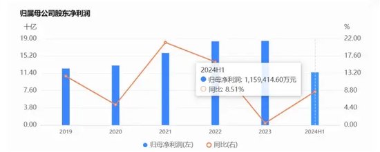 2024年上半年,南京银行营收和净利润同比分别增长7.9%和8.5%,较一季度的增速分别提升了5.1个百分点和3.4个百分点,较去年全年分别提升了6.7个百分点和8个百分点。