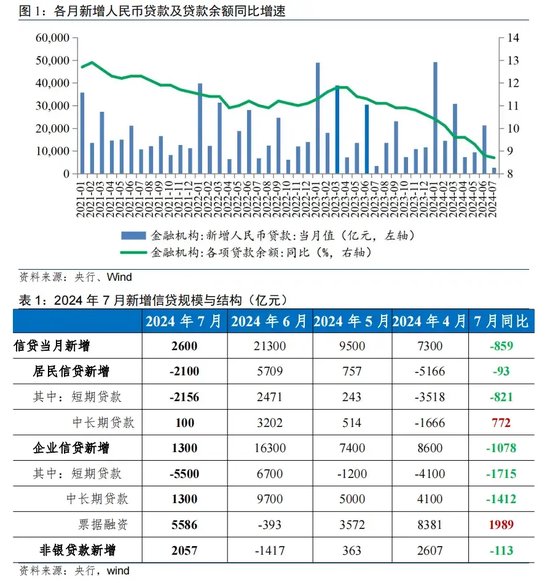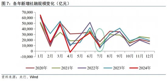 一、7月新增信贷季节性回落,低于过去五年均值