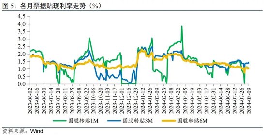 在此背景下,7月下旬1M票据转贴利率再现“零利率”行情,机构低价收票的一致性较强,延续了二季度以来的整体特征,票据占信贷比重升高。但值得注意的是,在有效融资需求不足时,银行短期内要加大实体经济支持力度,而项目储备不足,通过加大票据直贴、转贴力度,将代表企业信用的未贴现票据转化为代表银行信用的表内票据融资,对企业也实实在在提供了资金支持。同时,随着票据利率下行,中小企业通过票据融资的成本会相应降低,也可以激发融资需求。