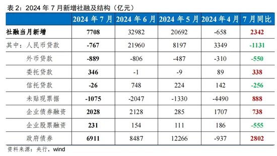 二、政府债和企业债形成拉动,7月社融增速小幅回升