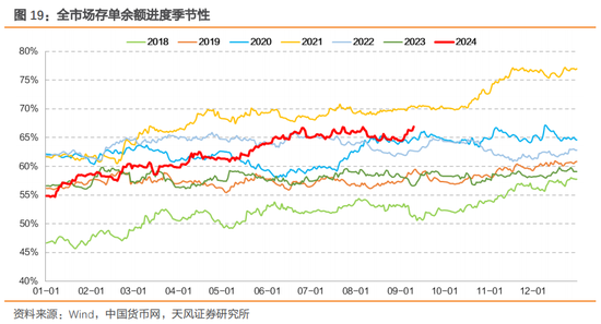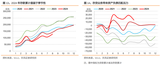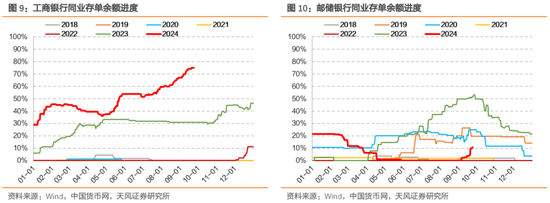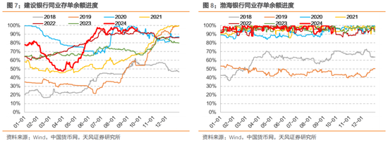 2024年一方面存款累计值弱于季节性,另一方面存贷业务或许存在一定差异,因此同业存单余额进度也高于季节性。