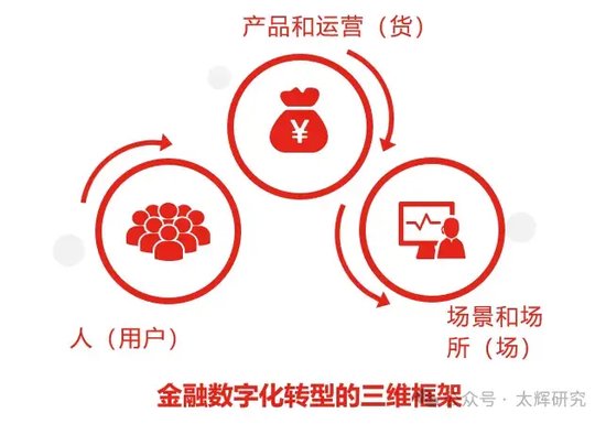 在发展逻辑上,金融机构推进数字化是实现“三维升级”。金融服务本质上是一整条供应链,涉及为谁服务(人)、服务什么(货)、怎么服务(场)三个基本问题,金融数字化要从“人—货—场”三方面对金融供应链进行创新升级。精准定位“人”(用户),核心是要通过客户画像,对存量客户进行精准分层,对增量客户进行精准延伸,让客户需求得到金融供给的精准对接;全面优化“货”(产品和运营),核心在于利用数字科技优化营销获客、评估定价、风险管理、售后服务等金融服务供应链的各个环节,不断创新服务,全面降本增效;无界融合“场”(场景和场所),核心在于既创新线上渠道和非金融场景,又推动线下网点智慧升级,将金融服务连接到更丰富的场景中,实现金融服务与实体活动的深度融合。