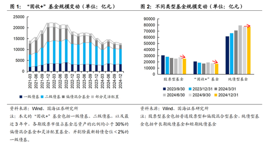 总的来看,受2024年四季度股市宽幅震荡的影响,“固收+”整体规模再次出现小幅萎缩,尤其是含权类品种,仅一级债基相对更受益于债牛行情,规模逆势增长。