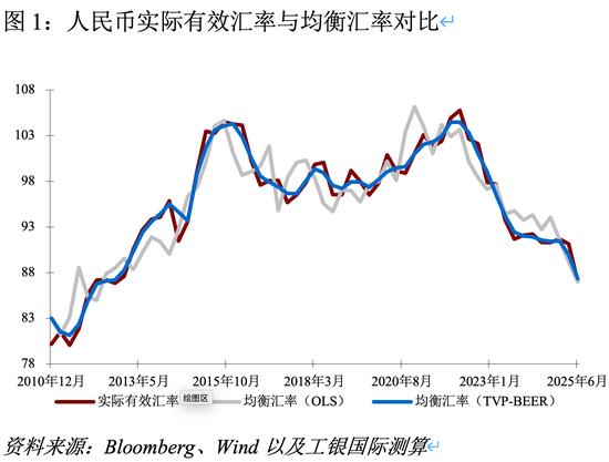 结合数据与测算结果来看,人民币实际有效汇率(REER)在过去15年呈现出阶段性特征:2010年前后,在生产率差异和贸易条件改善的推动下,实际有效汇率显著升值;2015年“8·11汇改”后短期承压,但长期趋势仍保持相对稳定;2018年贸易摩擦期间,实际有效汇率一度高于均衡水平;2020年疫情冲击期间,中国经济因出口韧性和率先复苏而支撑人民币走强;2022年以来,随着美联储大幅加息和美元周期性走强,人民币实际有效汇率出现回调。