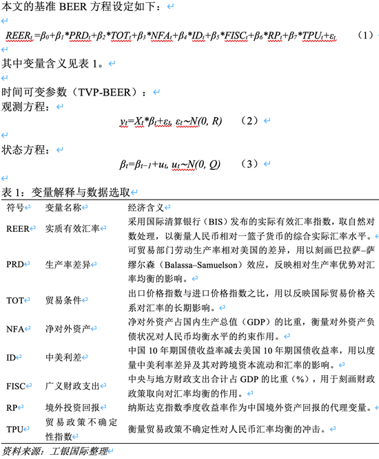 一方面,BEER可以纳入多维度的基本面与金融变量,既包括生产率差异、贸易条件、净对外资产等实体经济因素,也涵盖中美利差、财政收支、境外投资回报及政策不确定性等金融与制度因素,从而建立起对人民币长期均衡水平的统计刻画。另一方面,考虑到中国经济结构持续调整、全球金融周期频繁波动以及外部冲击不断叠加,传统静态BEER的固定系数假设难以反映这些变化。