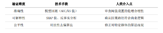 清晰的角色定位:在当前AI信贷风险分析能力尚未形成革命性突破前,应建立清晰的角色定位。在简单信贷中确立“算法提供基准,人类把握例外”的原则;在复杂信贷中,人类专家居于决策核心,机器扮演辅助、验证与赋能的角色(提供数据、提示风险、执行刚性规则),形成深度耦合的混合智能。