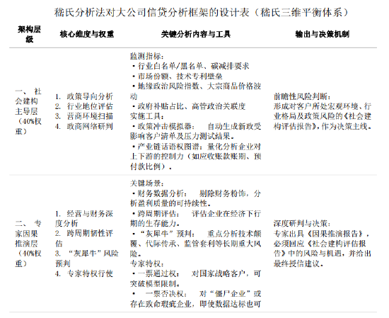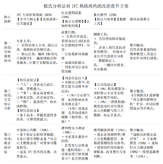 (2)举例2:在传统的IPC分析法基础上,利用嵇氏辩证分析法进行改造,构成“专家因果推演优先主导,模型与社会建构双翼协同”的逻辑框架(非完成品,仅为说明嵇氏风险分析理论,供参考)当然,这样的改造难度很大,建议有过大规模应用IPC的信贷机构在此基础上升级,我还做了一个微贷专家策略法的应用----嵇氏五维微贷分析法,比较适用普遍信贷人员没经过IPC系统化训练的银行从零开始。