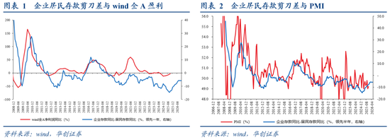 实体经济的流动性重点跟踪企业居民的存款剪刀差,其预示未来一年的利润走势。其底层逻辑是,实体经济循环发生在企业和居民之间。企业给居民发工资,居民拿到工资后选择消费,投资,或是存款。如果企业存款增速高于居民,就意味着愿意投资消费的居民增加,那么经济循环加速,后续企业利润自然改善;但如果企业存款增速低于居民,就意味着形成存款的居民增加,对应居民投资消费意愿自然偏弱,后续企业利润自然遭受冲击。