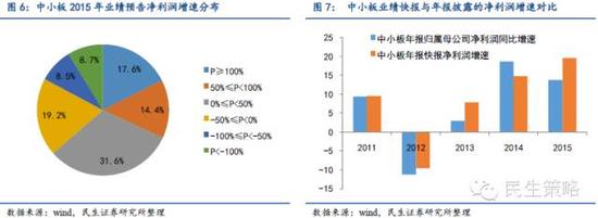 中小板2015年净利润增速约为13.7%,相比2014年的18.71%有所下滑,剔除金融板块后净利增速约为11.1%。2014年中小板净利润增速为18.71%,2015年三季报净利润增速为16.19%,中小板年报预告净利润增速中值为30%。业绩快报中63.6%的上市公司拥有正净利润同比增速,17.6%的高增长公司净利增速超100%。中小板年报快报披露率超90%,统计2015年已公布快报的公司净利润亏损比例为4.8%,归属母公司净利润同比增速达19.62%,过去三年快报相对年报的误差率为43.2%,调整后得到中小板2015年整体净利增速约为13.7%。总体上看,中小板上市公司净利润高度集中,剔除四大金融公司后(国信证券、宁波银行、西部证券和山西证券归母公司净利润占中小板的18.5%),中小板快报净利润增速约为7.8%。