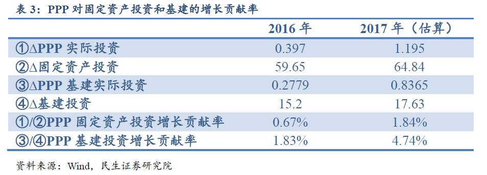 1、2017年PPP对固定资产投资和基建投资的拉动力加大