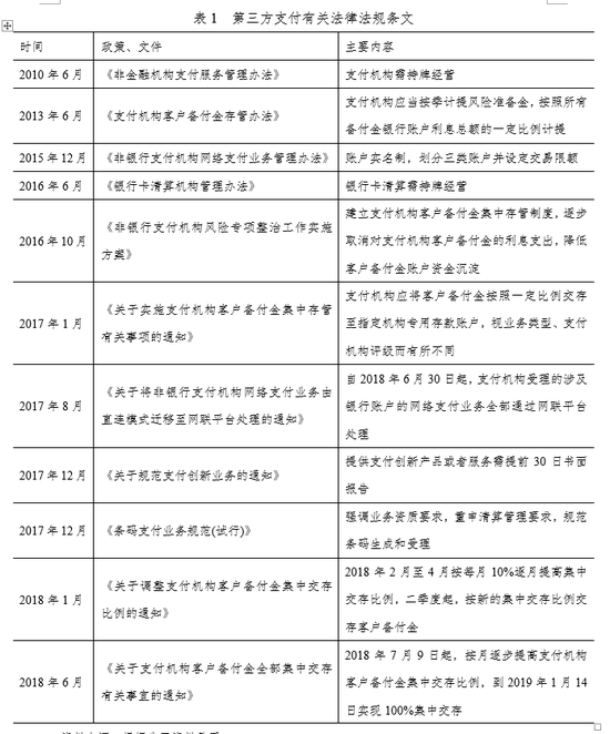 注解①:虽然学界对第三方支付的定义存在争议,本文将第三方支付定义为与各大银行签约的、有线上技术支持的、作为连接收款人和付款人的中介所提供的相关支付服务,包括网络支付、银行卡收单、预付卡等其他央行批准的服务。