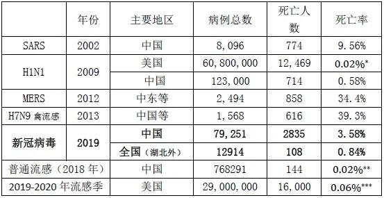 说明:* 2009年H1N1美国的数据是CDC事后建模预估的,当时由于疫情发展失控,后来没有统计和确认病例数了,据事后WHO的研究,当时H1N1在墨西哥境内死亡率为2%,在其他地区的死亡率为0.1%左右。**有研究认为中国疾控中心统计的流感数据可能被低估,因为确诊流感主要采用实验室检测,但并非所有具有上呼吸道感染症状的病人都进行过相关检测。***美国CDC在2月21日发布流感监测周报估计2019-2020年流感季美国已有至少2900万例流感病例,其中1.6万人死于流感相关疾病。