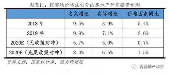 若政策能优先保障房地产项目的安全健康施工条件、促复工促施工,尽快结束施工复工持续推迟的影响,预计2020年实际投资增速6.5%、较2019年回落0.6个百分点,价格因素同比增长1.5%、回落1.1个百分点。