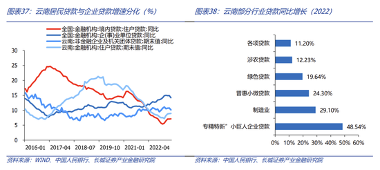 在中国人民银行昆明中心支行发布的《云南省金融运行报告(2022)》中显示,云南省在2022年末全省本外币贷款余额达4.27万亿元,同比增长11.2%,近三年年均复合增长10.58%,增速仍保持较高水平。从企业贷款结构来看,涉农企业、普惠小微企业、“专精特新”小巨人企业等均大于各项贷款增速,尤其对“专精特新”小巨人企业支持力度较大。2022年,云南省金融工作关键突出一个稳字,即总量稳定增长、结构稳中有进、价格稳中有降,为云南稳住经济大盘营造了适宜的货币金融环境。为了更好聚焦科技创新,2022年末,全省专精特新“小巨人”企业贷款余额同比增长48.54%,约为全省企业贷款增速的4.9倍。在稳企业保就业方面,全省普惠小微贷款年均复合增长24.30%,贷款户数累计增加50.91万户。