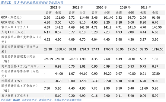 根据国家统计局的数据,2022年云南省GDP达2.90万亿元,占全国经济总量的1.88%,位居第17名,处中游水平。GDP增速为4.3%,高于全国的3.0%。人均GDP为5.22万元,位居全国23位,大幅低于全国的8.57万元。