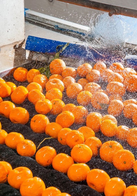 此外还会在不破坏橙子表皮的情况下,通过近红外线检测每个橙子的糖度和酸度,通过自动称重感应智能分级等措施,实现鲜果分选分级。