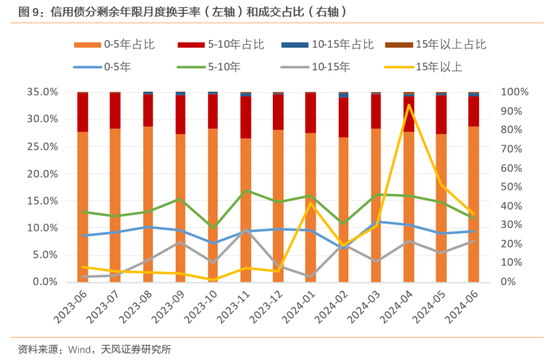 剩余期限方面,市场更多在交易5年以内剩余年限信用债,最近15年以上的超长债交易逐渐变得活跃。