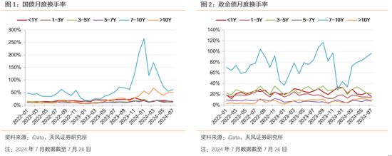 分期限来看,其中7-10Y换手率显著更高。观察国债和政金债月度换手率变化,剩余期限7-10年债券流动性显著较高。国债换手率在2023年底2024年初达到阶段高点,2023年12月和2024年1月分别为207%和265%,随后略有回落,但整体仍在2022年以来的相对高位。政金债流动也以7-10Y为主,近两年换手率平均在74%左右。
