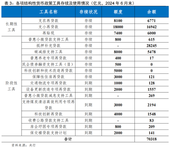 2024年以来,央行先后下调了支农支小再贷款、再贴现利率,设立了科技创新和技术改造再贷款和保障性住房再贷款。支农支小再贷款、再贴现利率下调有助于在乡村振兴、普惠小微和民营经济领域继续注入金融力量,与其他政策形成多方合力,促进重点领域和薄弱环节持续向好;科技创新和技术改造再贷款可以有效满足高端制造业和数字经济等科技创新领域,以及工业、农业、建筑、教育、交通、文旅、医疗等设备更新改造领域的融资需求,推动其形成实物工作量;保障性住房再贷款,有利于通过市场化方式加快推动存量商品房去库存,加大保障性住房供给,助力推进保交房工作及城市房地产融资协调机制。