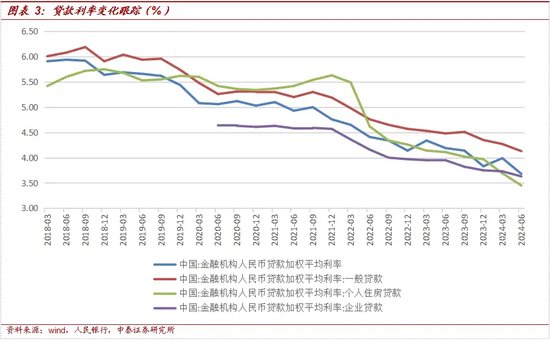 贷款利率继续向下。《报告》指出,6月,新发放贷款加权平均利率为3.68%,较3月下降31bp。其中,一般贷款加权平均利率为4.13%,较3月下降14bp;企业贷款加权平均利率为3.63%,较3月下降10bp个人住房贷款加权平均利率为3.45%,较3月下降24bp。