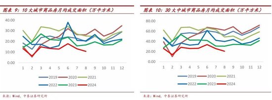 7月、8月按揭贷款需求景气度跟踪:10大和30大城市商品房7月成交面积分别为13.09和25.82万平方米,在季节性因素作用下回落,销售面积仍低于往年同期水平。8月到目前为止10大和30大城市商品房成交面积分别为10.67和20.74万平方米,较7月边际走低。