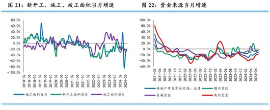 三大投资指标大体持稳。1-7月新开工面积同比降幅收窄0.5个百分点至-23.2%;施工面积降幅扩大0.1个百分点至-12.1%;竣工面积降幅持平于-21.8%。从当月增速看,三大指标降幅均有所收窄。