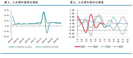 7月规模以上工业增加值同比增长5.1%,慢于上月的5.3%。当月环比增长0.35%,略低于上月的0.42%,略弱于历史同期0.48%的平均增速。