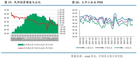 此外,7月中、小型企业PMI分别为49.4%和46.7%,比上月下降0.4和0.7个百分点,景气水平均有所回落。近期统计局发布的中小企业信心指数仍然低迷,经济内生动能有待提振。