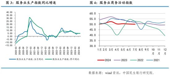 7月服务业生产指数同比增长4.8%,较上月加快0.1个百分点。7月服务业商务活动指数为50.0%,较上月回落0.2个百分点,略好于季节性。