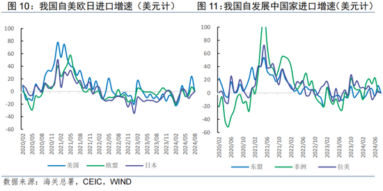 随着美国需求放缓,我国对东盟出口增速小幅回落。8月,我国对东盟出口增长9%,前值12.2%,拉动出口增长1.4个百分点。东盟是我国商品出口至美国的主要中转地区,随着美国进口需求收缩,作为我国产业链下游的东盟,进口需求也会随之放缓。8月,越南出口增速由7月份的21%下滑至16.1%,亦能够印证我们的观点。