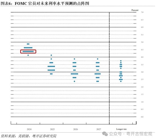 从降息力度看,本次降息50bp略超预期,反映美联储对实现通胀目标更有信心,并加大对就业目标的支持力度。一是参考前几轮预防性降息的节奏,美联储首次降息不会太过激烈,均以25bp开始,本次降息50bp,略超预期。二是美联储对实现通胀目标的信心增强,通胀对降息的掣肘减弱,FOMC下调美国2024年PCE通胀预期至2.3%,6月会议预期为2.6%。三是劳动力市场风险上升,FOMC将年底失业率预期从4.0%上调至4.4%。