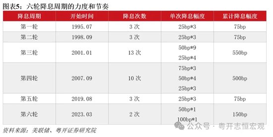 回顾前六轮美联储降息周期,预防性降息的节奏较慢、降幅较小、持续时间较短,纾困性降息节奏更快、降幅更大、持续时间更长。