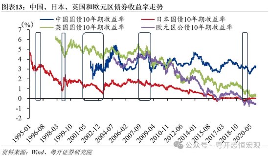 中债、日债、英债、欧债走势相对独立,与美联储货币政策的相关性较低。各债券市场定价主要受各市场经济基本面和货币政策影响。复盘美联储历次降息周期,中债、日债、英债、欧债走势相对独立,无明显规律。